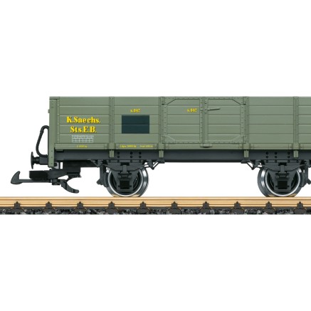 Der offene Güterwagen K 347 erscheint in der typischen grauen Lackierung der königlich sächsischen Staatseisenbahn.