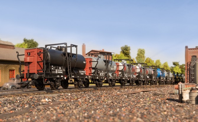Kesselwagen der sogenannten Verbandsbauart, wie sie ab ca. 1915 in Dienst gestellt wurden. Diese Wagen besitzen einen mittelgroßen Kessel mit einen Fassungsvermögen von im Vorbild 19,2 m³.