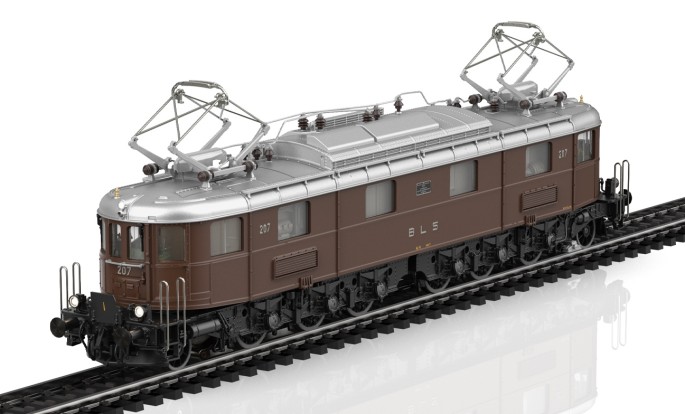 Die schweizerischen BLS (Berner Alpenbahngesellschaft Bern–Lötschberg–Simplon) wurden 1906 gegründet um eine alternative Trasse zur Gotthard-Strecke zu schaffen. Der Lötschbergtunnel wurde schließlich 1911 fertiggestellt und der der Betrieb 1913 aufgenommen. Bis Anfang der 1920er Jahre stiegen die Beförderungsleistungen so stark an, dass man sich entschied eine neue Lokomotiv-Baureihe zu beschaffen. die neue 8-achsige Lokomotive der Bauart Be 6/8 erfüllte die Anforderung war die Basis für die folgende Ae 6/8. Das formneue Märklin-Modell gibt das Vorbild der Ae 6/8 207 perfekt wider. Es ist mit zahlreichen digitalen Funktionen ausgestattet und besitzt wegen seines hohen Eigengewichtes eine hohe Zugkraft. Das Modell gibt das Vorbild im Zustand um 1950 wieder.