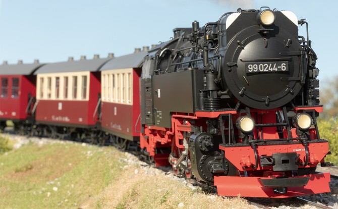 Modell eines Personenwagens der Deutschen Reichsbahn aus dem Netz der Harzer Schmalspurbahn. Originalgetreue Farbgebung und Beschriftung der DR Epoche IV. Viele angesetzte Details, Inneneinrichtung mit Toilette. Metallradsätze.